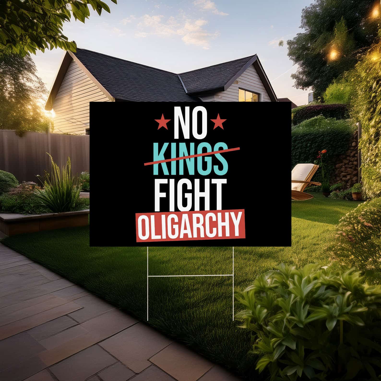 No Kings Fight Oligarchy Yard Sign