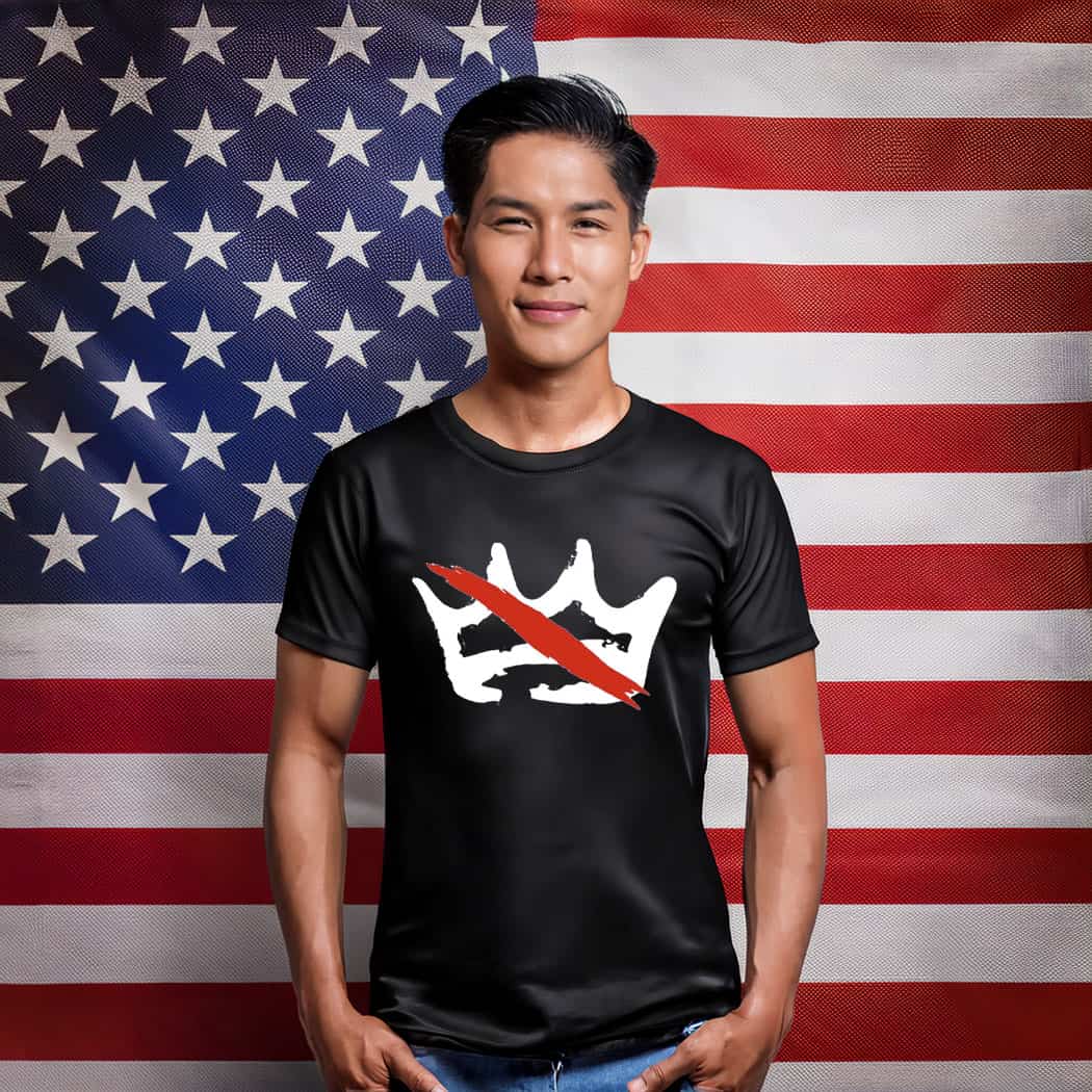 Made from soft, breathable fabric with a durable printed graphic, the No Kings in America political statement shirt is comfortable for everyday wear while keeping the design sharp and visible.