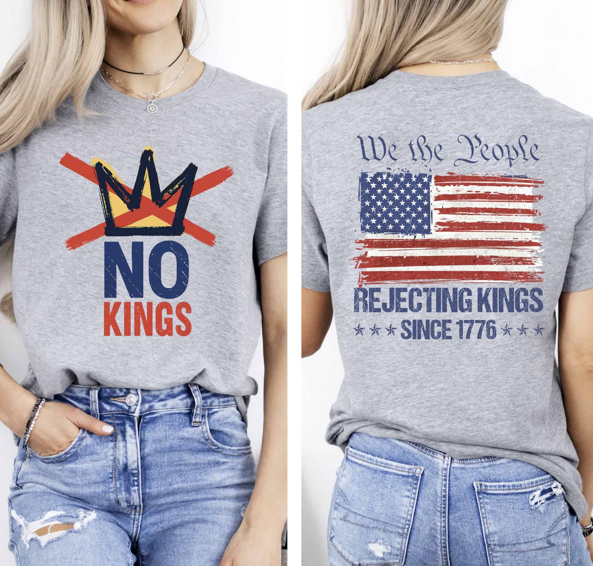 Perfect for history enthusiasts, civic-minded individuals, and anyone who enjoys patriotic symbolism, this No Kings shirt combines bold typography with a powerful historical message. It’s great for Independence Day celebrations, civic events, casual wear, or simply showing pride in democratic values.